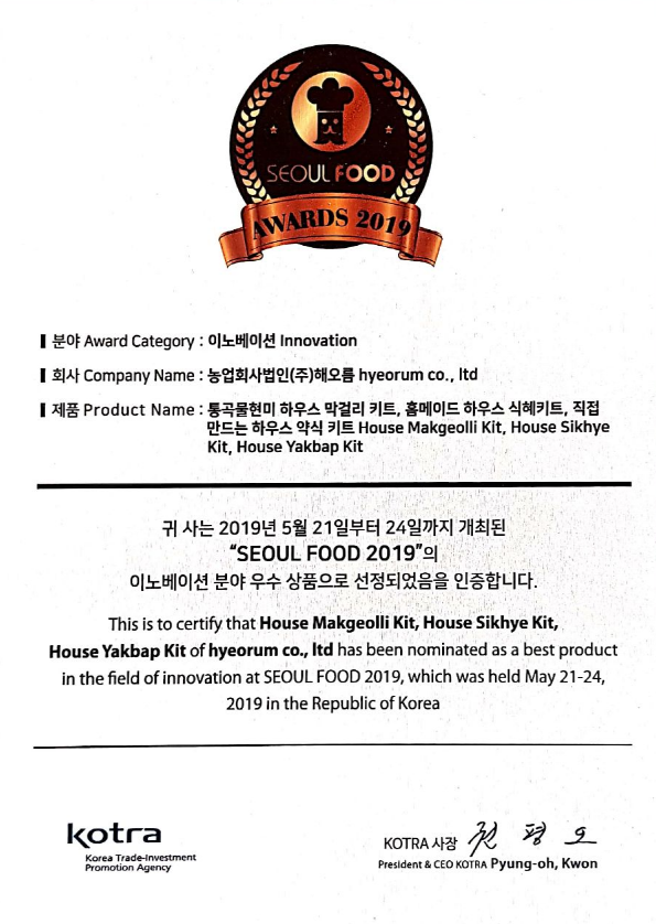 "한국 전통 식품의 가치를 올바르게 담아내다"
